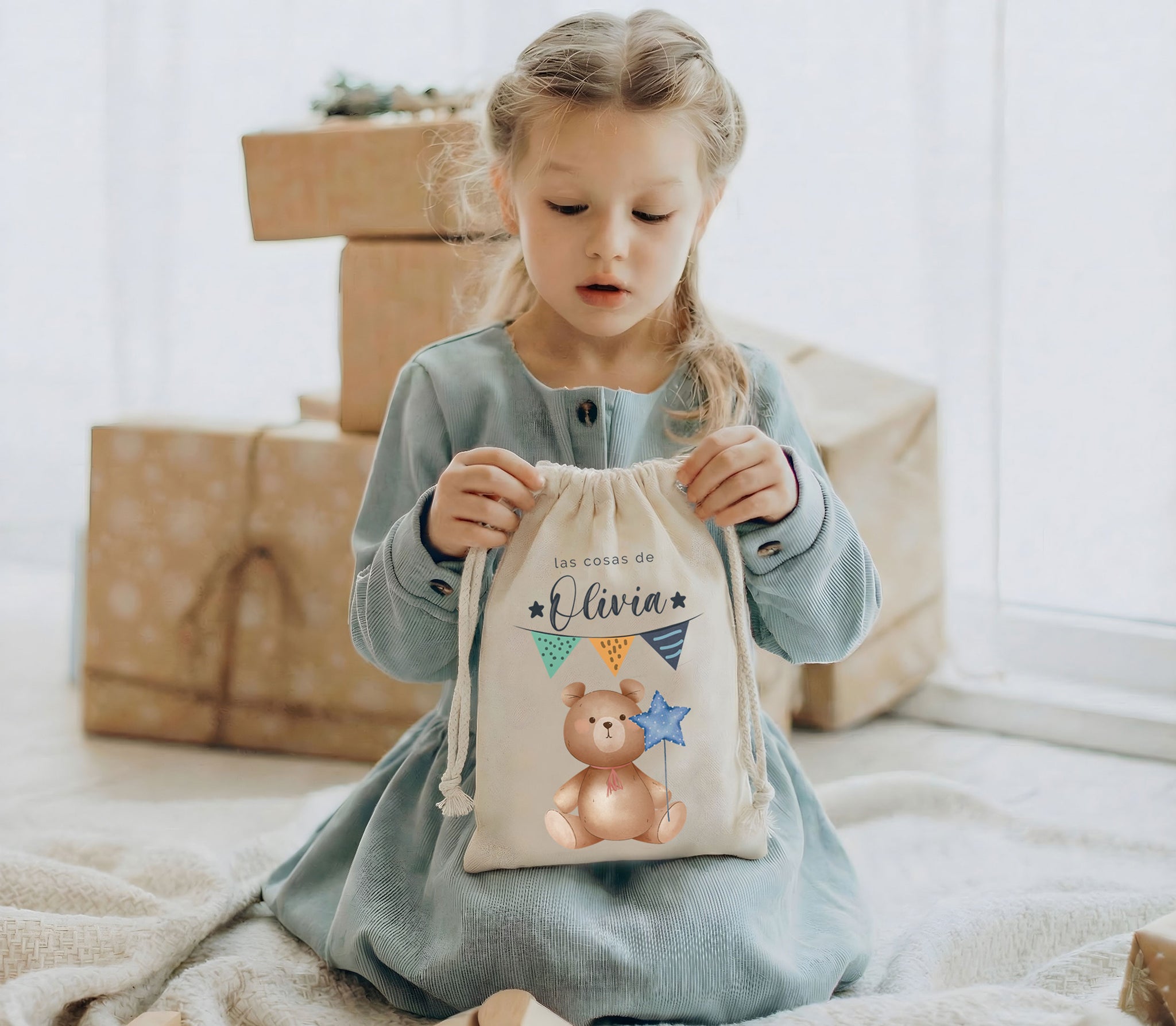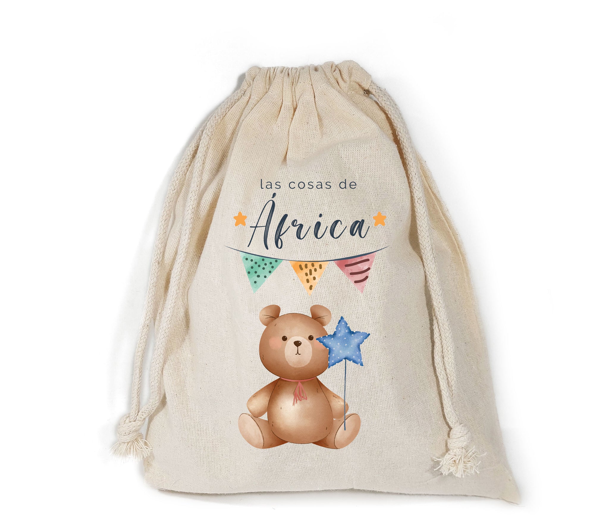 El saco se personaliza con el nombre deseado. Para ello cumplimentar el campo PERSONALIZACIÓN con el nombre que debe aparecer, antes de imprimir os mandaremos un boceto para su aprobación.